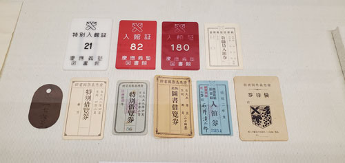 常設展示では、アメリカの写真館で撮影された若き日の福澤諭吉の写真や著作物、学徒出陣で出征した学生の遺稿などがあります。そうした資料の中で最初に私の目を引いたのが図書館の「入館券」でした。
