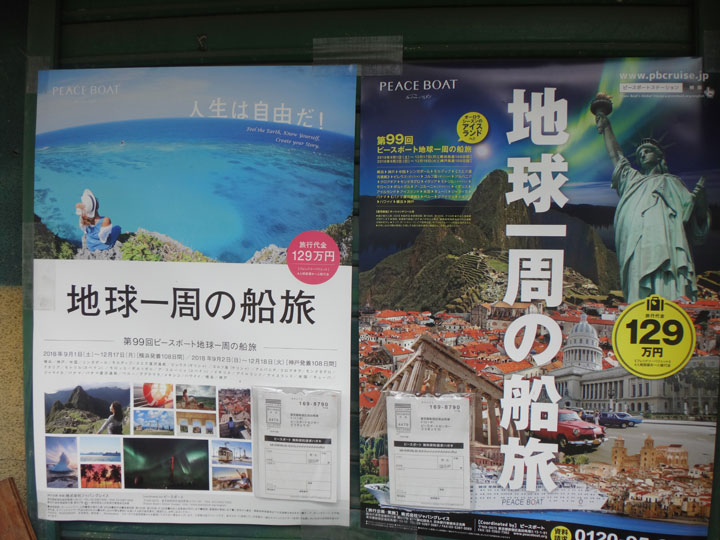 街を歩くと「地球一周船の旅」のポスターを良く見かけます。国際交流を目的に設立された国際NGO・ピースボートが主催する船旅の宣伝紙です。今回は、このピースボートを利用しました。実は91歳になる母が74歳の時、ピースボートで地球を一周し、この時の船旅が人生で一番楽しかったと私に何度も話してくれました。そこでサラリーマンを完全リタイヤしたら長年苦労をかけた妻とピースボートに乗ろうと決めていました。その夢がやっと実現したのです。