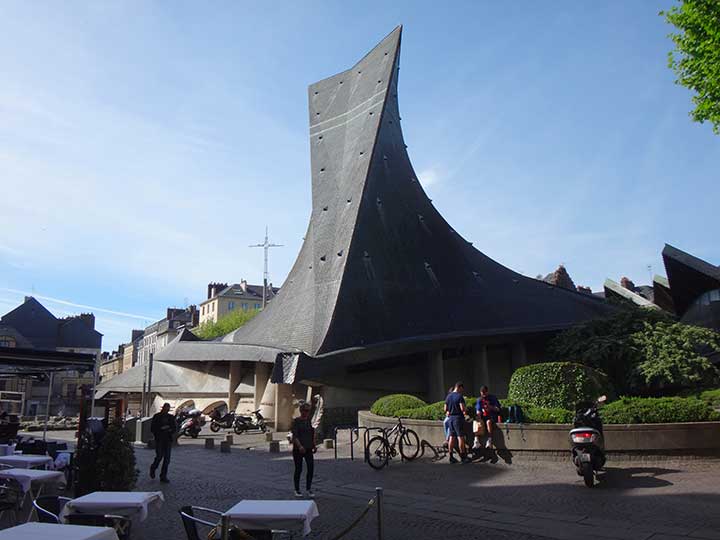 ジャンヌ・ダルクは15世紀、英仏百年戦争の最中に突如現れ、敗色濃かったフランスを奇跡的な勝利に導きましたが、最後は魔女として断罪され火炙りになりました。処刑場となった旧市場広場には、彼女に捧げられた背の高い十字架とモダンな造りの教会が建てられていました。教会の屋根の形は火刑台の炎を連想させます。処刑された時彼女は19歳、毅然とした態度だったといいます。ジャンヌ・ダルクは、今ではフランスの愛国心のシンボルになっています。