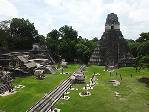 2017年6月29日午前8時、エルサルバドルのアカフトラに着きました。今回の船旅の主な目的の一つがマヤ文明の遺跡ティカル観光でした。マヤ文明は中米のユカタン半島からグアテマラ、ホンジュラスにかけて古代から栄えたマヤ族の都市文明で、六千もの遺跡群の中で最大のティカル遺跡は隣国グアテマラにあります。そのためアカフトラ港からバスで約2時間かけて首都サンサルバドルの空港に行き、空路グアテマラに向かいました。30日夜の出港までに船に戻って来られるように、68人乗りの飛行機1機をチャーターしての1泊2日の旅でした。1時間余りでグアテマラ北東部のフローレスに着きました。