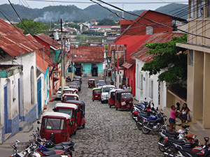 初日は、ペテンイッツア湖に浮かぶ300m四方の小島・フローレス島を観光しました。この島にはかつて先住民のマヤの人たちが大勢住んでいました。スペイン人に征服された後スペイン風の街並みに変わり、観光客相手の土産店や飲食店などが軒を連ねていました。スペイン人がマヤのピラミッド状の建造物を潰して建てた教会には、人種を問わず信仰できることを示す黒い肌のキリストの像がありました。
