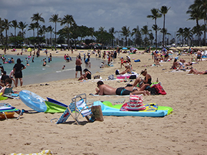 ところで、ハワイではホームレスが大きな社会問題になっています。確かに街を歩いていると所々でホームレスを見かけました。ホームレスは、州都ホノルル市のあるオアフ島だけでも、約5千人いるといいます。ホームレスが増えたのは、冬でも凍死する恐れのない常夏の島に全米からホームレスが集まってきたことが背景にあります。ホームレスになった原因は、精神疾患と薬物中毒が半分近くを占め、エイズの感染者や家庭内暴力の被害者が続きます。州政府や市は、こうした病人を治療し、ホームレスの宿泊施設に助成金を出すなど様々な取り組みをしています。華やかなハワイの負の側面です。ハワイを出るといよいよ帰国、地球一周の航海は終わりに近づきました。連載も次が最終回です。
