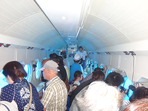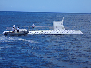 ハワイ2日目は、最先端のテクノロジーを駆使した観光用潜水艦で水深30mの海中の世界を楽しみました。ワイキキ沖では、過去100年間に天然の珊瑚礁が次々と失われ、わずかな魚しか生きることができないほど環境が悪化した時期がありました。今は人工漁礁群の設置等で元の環境に戻りつつあるといいます。沖合に設置された人工漁礁や飛行機の残骸などを新たな住処に悠々と泳ぐ魚の群れやウミガメの姿を40分あまり観察しました。